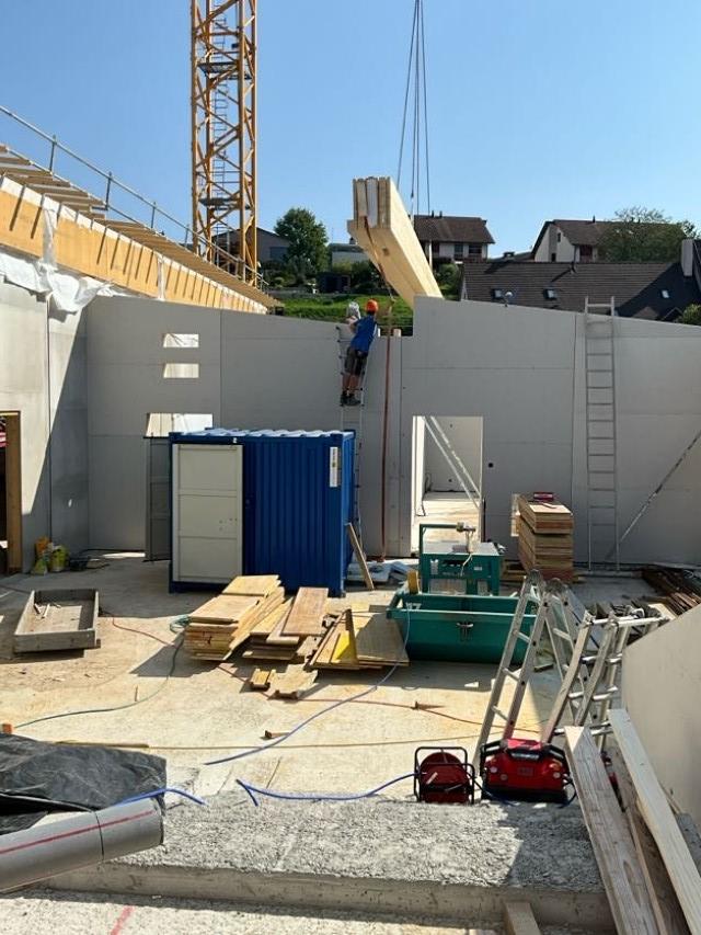 In Zeiningen entsteht eine neue Mehrzweckhalle, welche moderne Architektur mit nachhaltigem Bauen vereint.